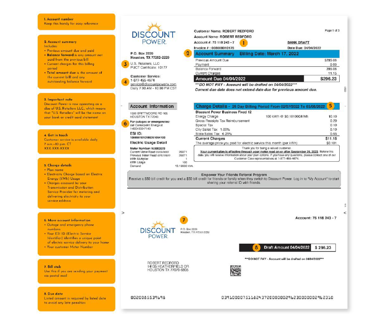 • Explora la factura de ejemplo a continuación para que entiendas mejor cómo se verá tu factura y lo que incluirá.